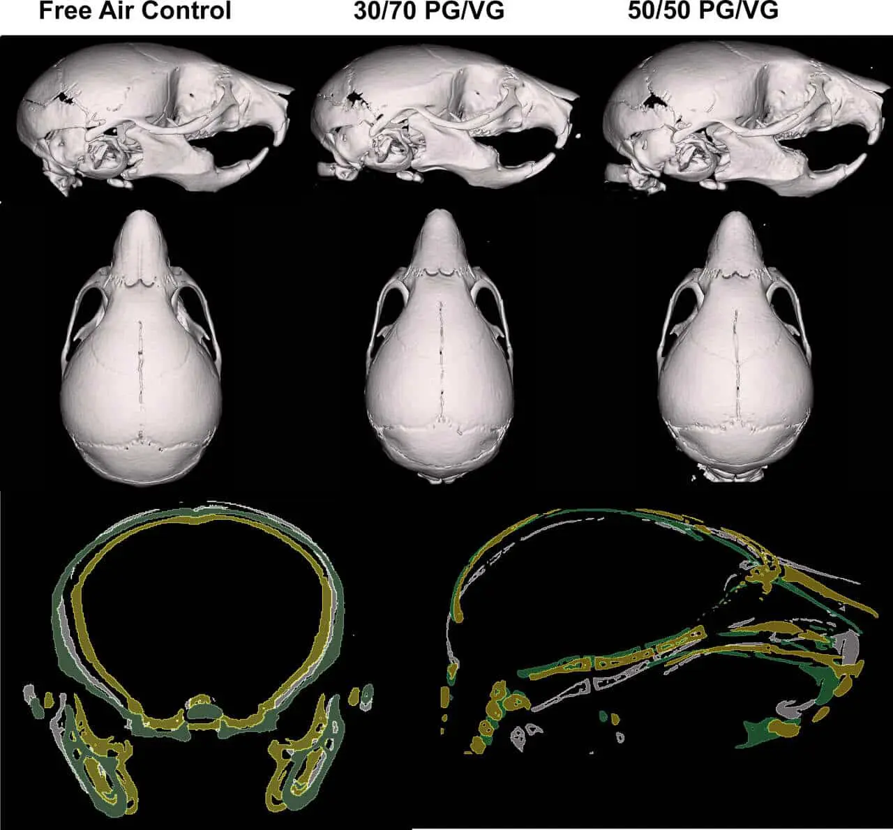 Результаты экспериментов оказались впечатляющими. Мышата, матери которых вдыхали смесь с низким содержанием пропиленгликоля (30%) и высоким содержанием глицерина, по массе уступали сверстникам, отличались более короткими черепами и суженными мордами. При сравнении групп, в которых использовались разные рецептуры смесей, оказалось, что выраженные отличия касались именно группы с пониженным PG. А вот потомство самок, подвергавшихся воздействию аэрозоля с равным содержанием PG и VG (50/50), не продемонстрировало отличий от контрольной группы, дышавшей обычным воздухом.