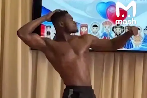На записи видно, как атлет африканского происхождения, облачённый в спортивные плавки, уверенно демонстрирует свою впечатляющую физическую форму. На кольце экрана телевизора отображается праздничная символика Дня народного единства, а участник эффектно позирует, показывая рельефный пресс и мощные бицепсы. Жители Брянска позитивно встретили неординарное шоу, отметив, что оно придало праздничному дню дополнительные краски и эмоции.